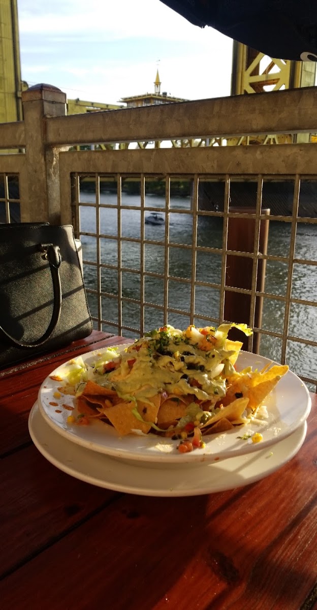 Great service with a view of the river and bridge. Food was excellent. Great atmosphere! I had the Spicy chicken with mashed potatoes and Cajun gravy! Affordable Kids meals served too.