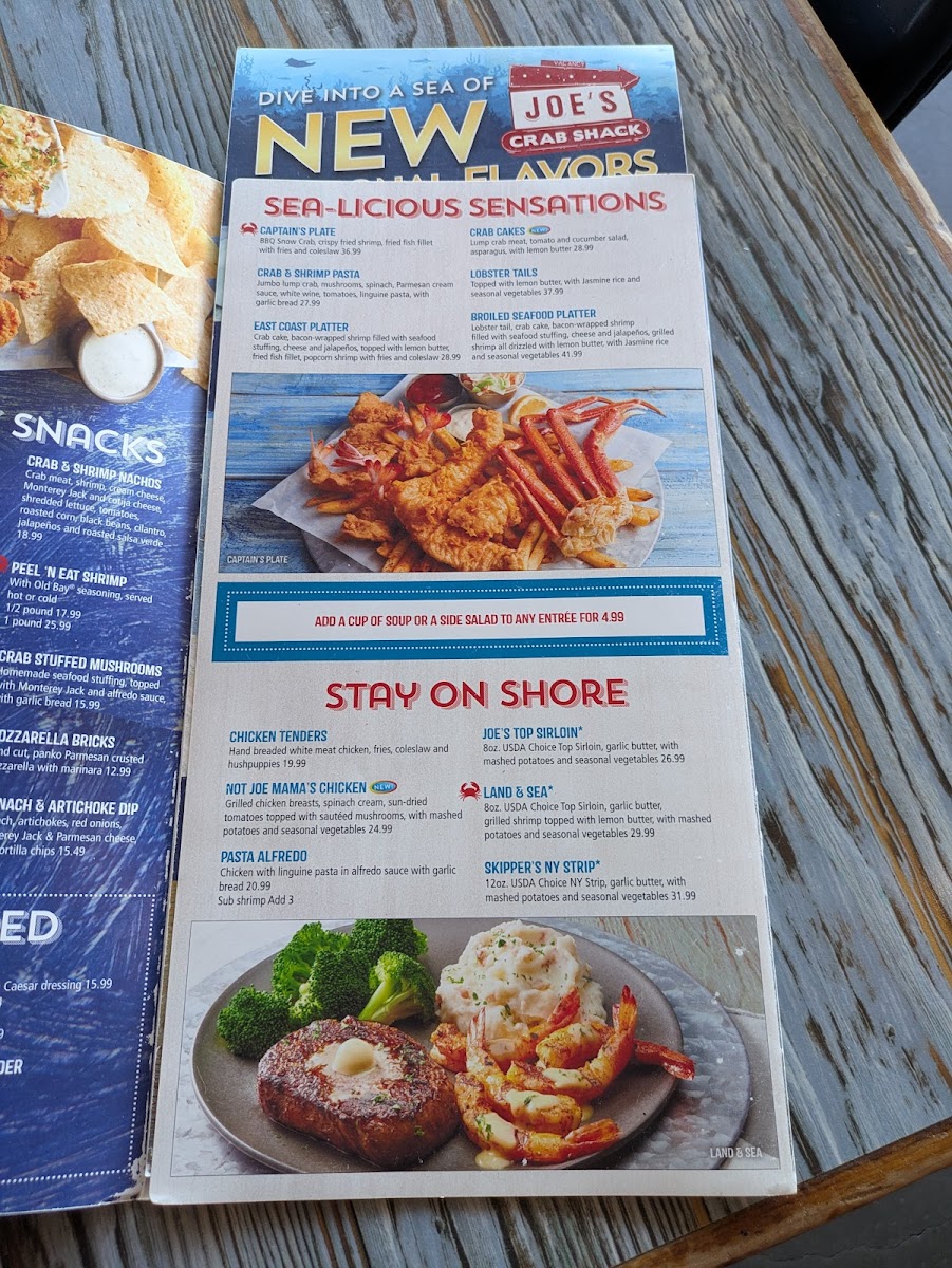 Overall, the menu at Joe’s Crab Shack fits neatly into a family-friendly environment where great company pairs with reliably well-prepared food and drinks that keep things easygoing and enjoyable.